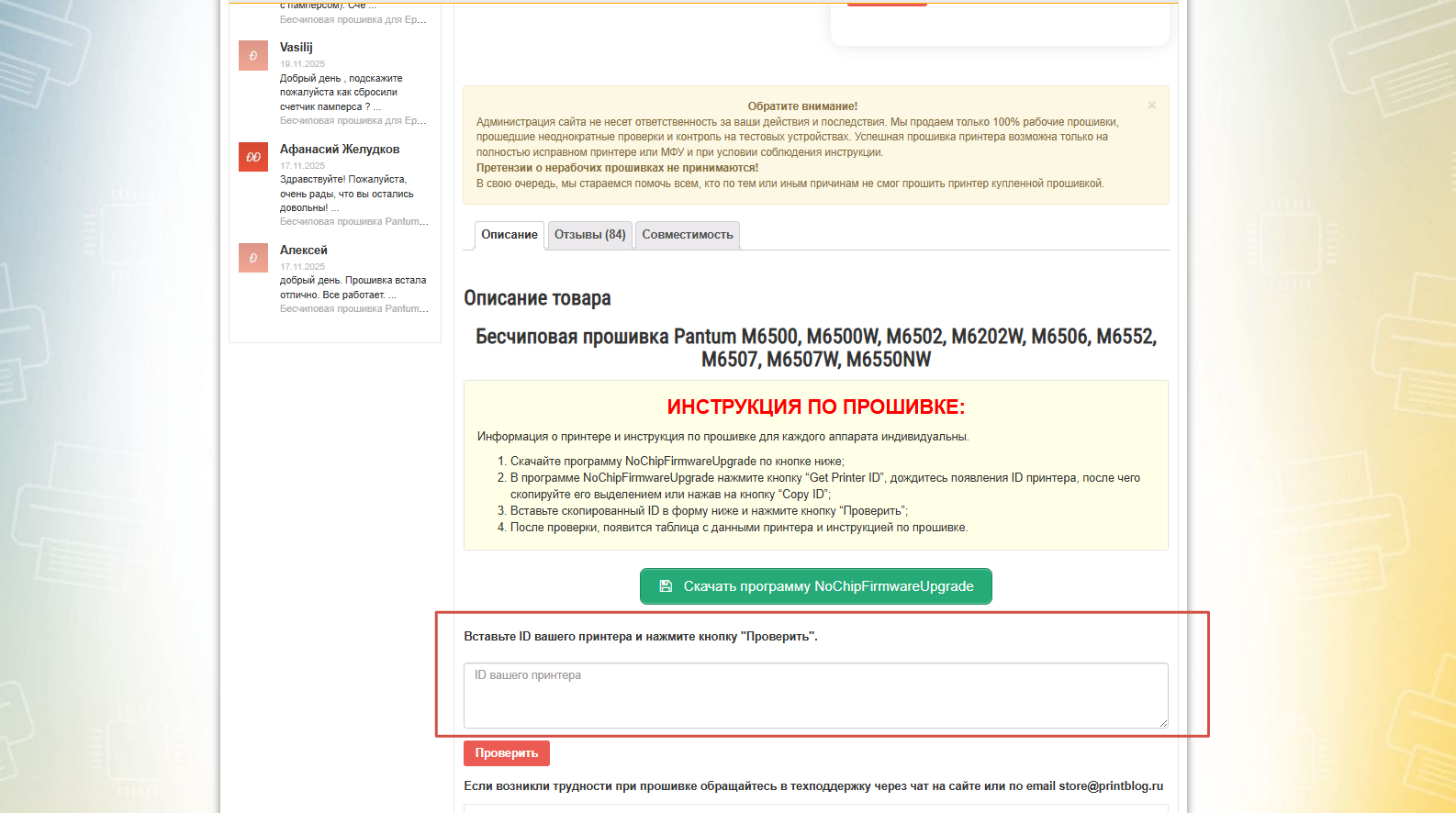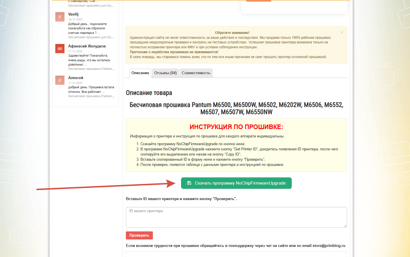 Инструкция по бесчиповой прошивке Pantum M6500, M6500W, M6502, M6202W, M6506, M6552, M6507, M6507W, M6550NW.