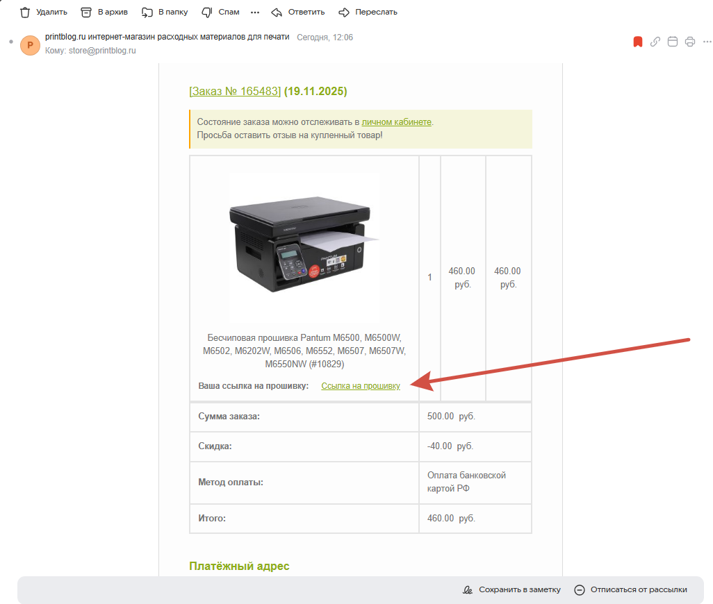 6. Приобретаем прошивку. Прошивка приходит моментально на электронную почту после оплаты
