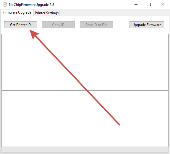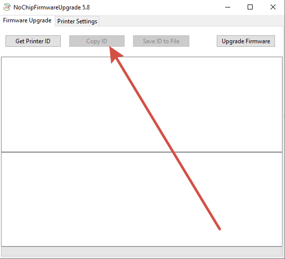 3. В программе NoChipFirmwareUpgrade нажмите кнопку “Get Printer ID”, дождитесь появления ID принтера, после чего скопируйте его выделением или нажав на кнопку “Copy ID”;