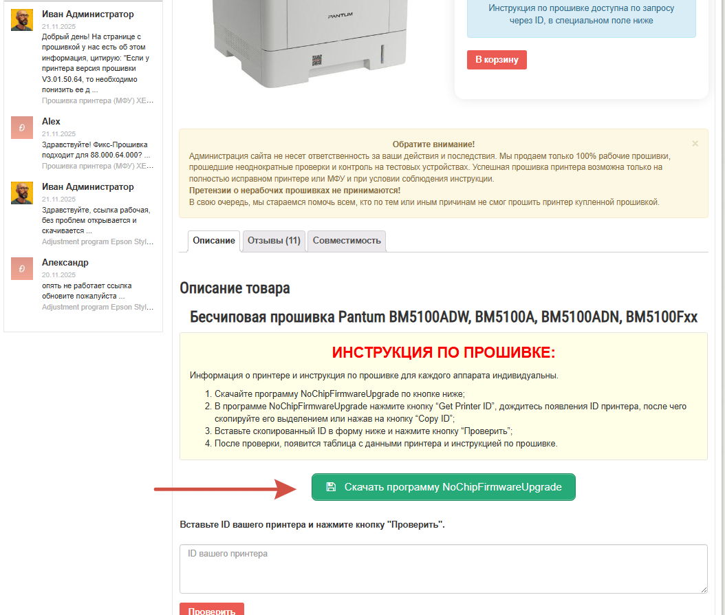 Прошивки для принтеров Samsung, Xerox, HP, Pantum вы можете получить в автоматическом режиме, круглосуточно, моментально после оплаты, сделав заказ через магазин