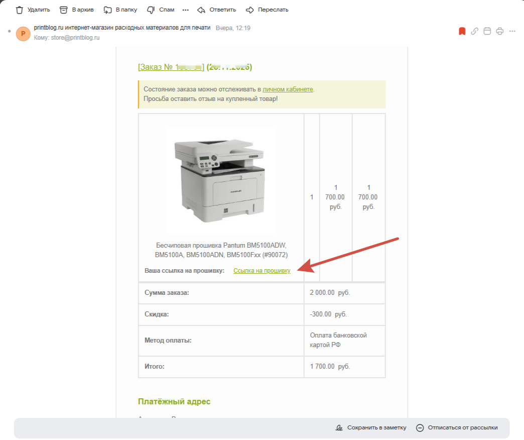 6. Приобретаем прошивку. Прошивка приходит моментально на электронную почту после оплаты