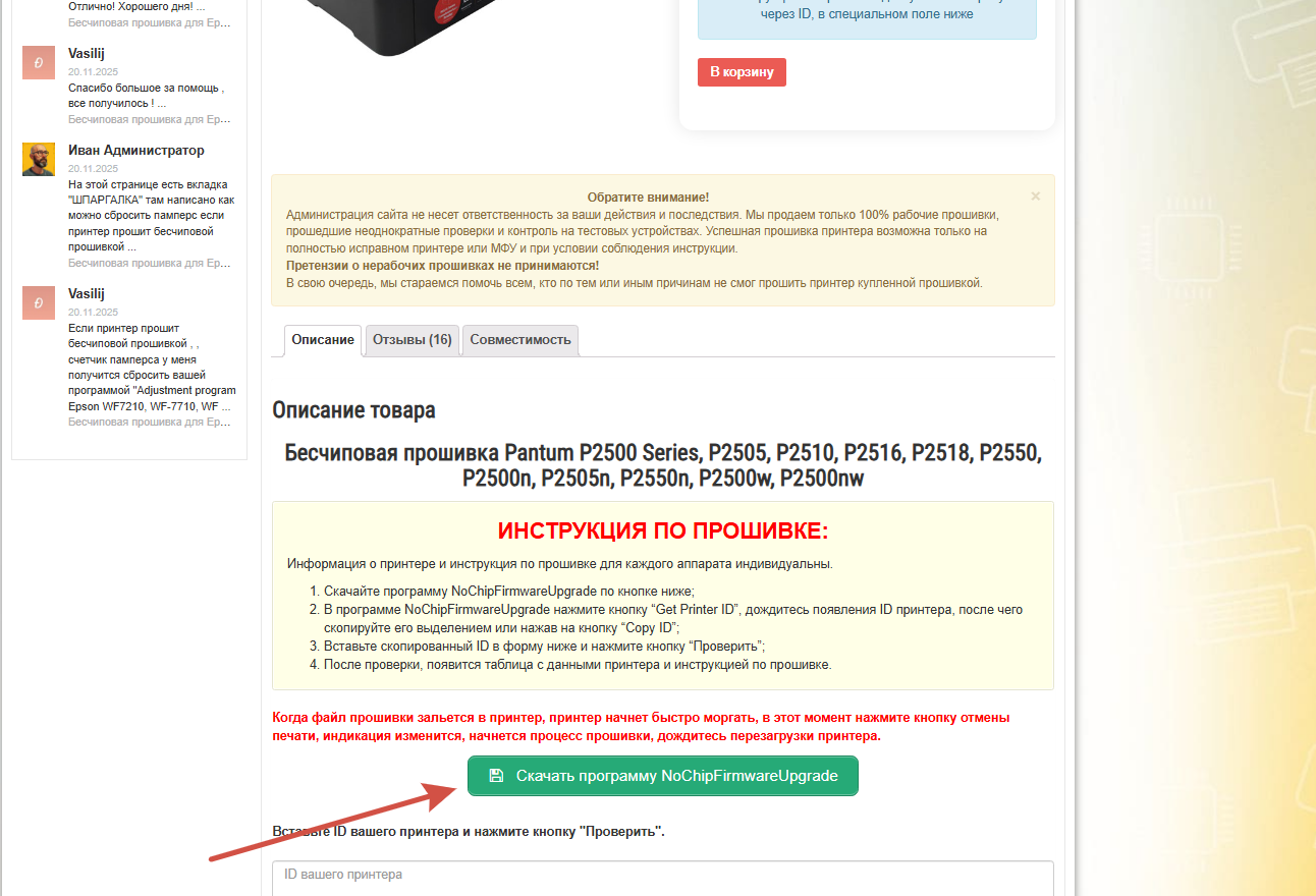 Прошивки для принтеров Samsung, Xerox, HP, Pantum вы можете получить в автоматическом режиме, круглосуточно, моментально после оплаты, сделав заказ через магазин
