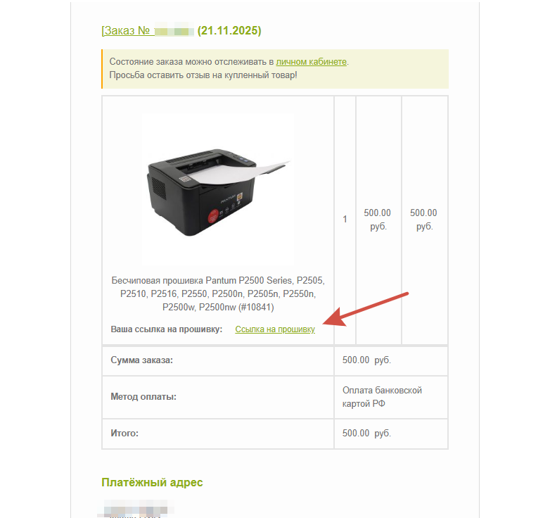 6. Приобретаем прошивку. Прошивка приходит моментально на электронную почту после оплаты