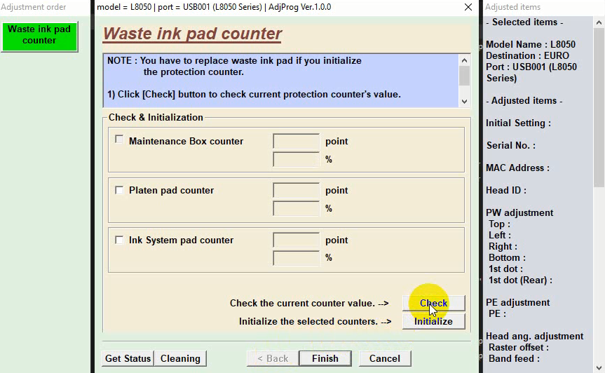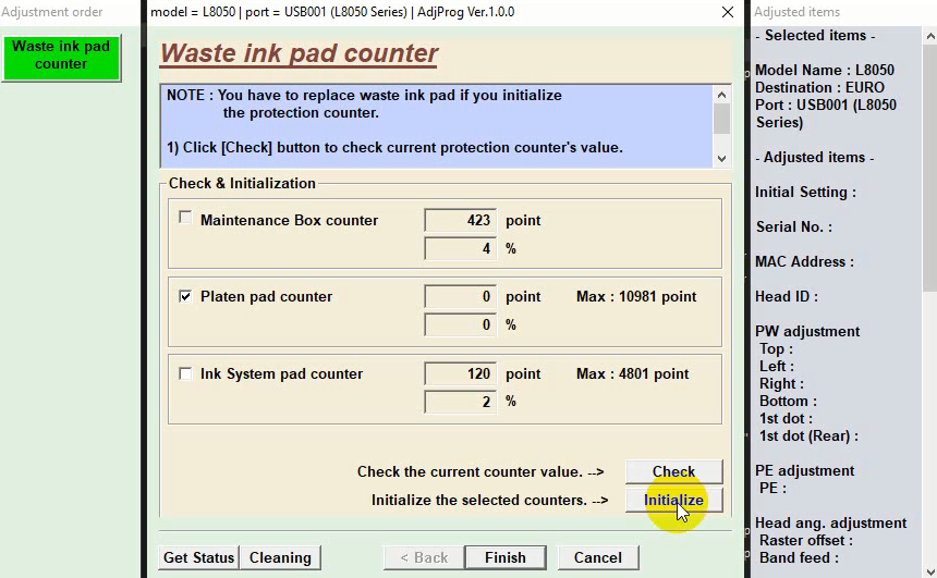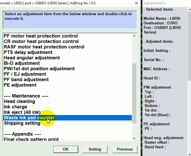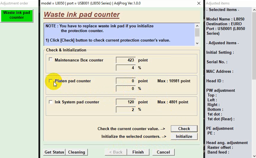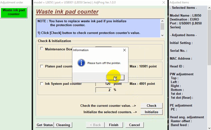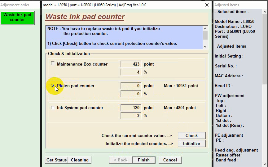 После оплаты и активации программы сбрасываем электронный счетчик Platen в вашем устройстве на примере Epson L8050