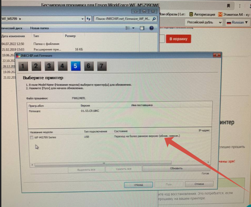 3. Если прошивка была успешно загружена в принтер, то ваш принтер Epson WorkForce WF-M5799DWF можно успешно прошить бесчиповой прошивкой.