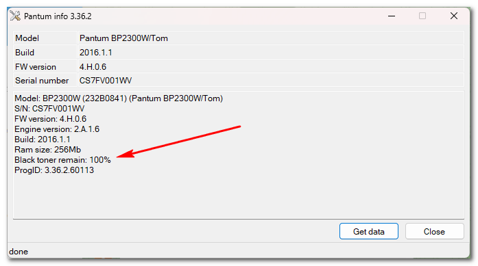 - Скачать и запустить программу PantumInfo