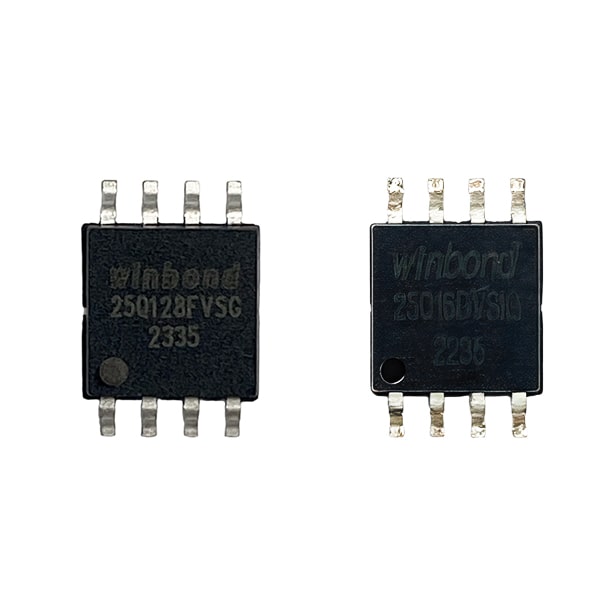 - Выпаять микросхему 25Q128 (с обратной стороны платы) и 25Q16 (с лицевой стороны платы) и впаять на их место полученные, прошитые микросхемы (обратить внимание на ключ микросхемы и на качество пайки):