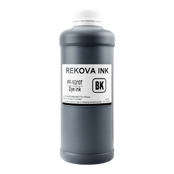 Чернила Rekova PFI-102/107 PBK черный водный, 1л. для Canon imageprograf iPF770, iPF670