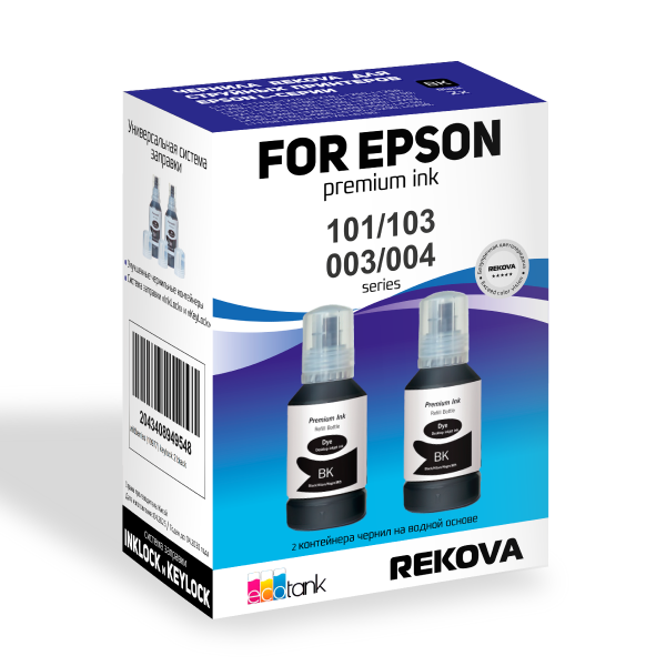 Чернила REKOVA 127 мл. Epson 101/103, Black (черные), водорастворимые, 2 шт.