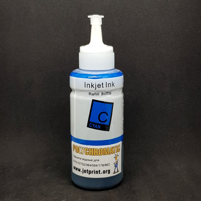 Чернила Polychromatic 100мл HP (GT51, GT52, 364, 564, 178, 862) цвет Cyan, водорастворимые